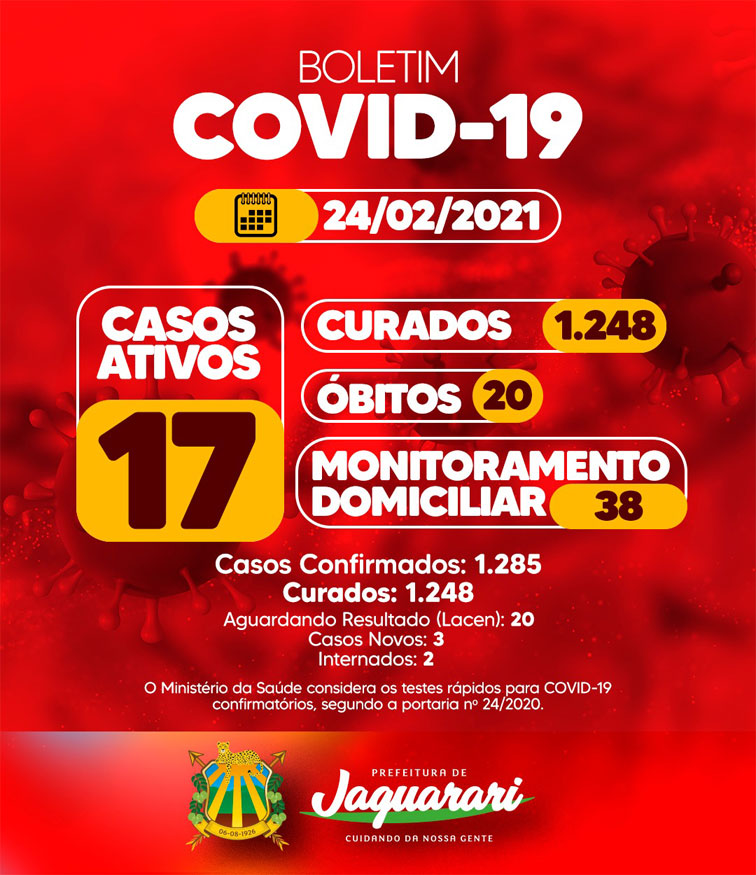 BOLETIM EPIDEMIOLÓGICO DE JAGUARARI: FORAM REGISTRADOS TRÊS NOVOS CASOS DE COVID-19 NESTA QUARTA-FEIRA (24/2)